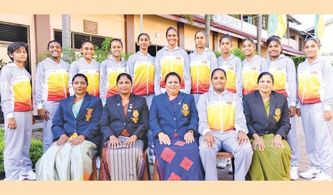 Sri Lankan team: First row (from left) – Deepani Seneviratne (Assistant Manager and Primary Physiotherapist – Holy Family Convent, Kalutara), Yasanthi Tharushika (Coach – Tissa Central College, Kalutara), Nirodha Abeywickrama (Manager, Principal – Maliyadeva Girls’ School, Kurunegala),Maheshi Kulasekara (Leader – Kandy Mahamaya), Shiranthi Prasadika Rajapaksa (Judge – Sapugaskanda Visakha Balika), Back row – Chenuki Jayasinghe (Hillwood College, Kandy), Ishini Weliwita (Kolonnawa Balika), Sanuli Uluwatte (Nugegoda Anula V.),Nethuni Jayawikrama (Holy Family Convent, Kurunegala), Priest Thenu Pemindhi (Sapugaskanda Visakha Girls), Reheni Wijesena (Matara Sujatha V.), Mahesika Kasiwatte (Kurunegala Maliyadeva Girls), Vimasha Subhashini (Karandeniya M.M. College),Venuji Gunawardena (Co-Vice Captain – Colombo Musius), Sayumi Suriyarachchi (Matara Sujatha V.), Situki Liyanage (Co-Vice Captain – Kandy Hillwood V.)