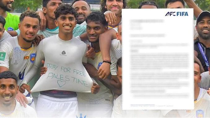 Sri Lankan footballer Mohamed Thilham has been fined USD 2,000 by FIFA for displaying a political message supporting Palestine after a recent international match.