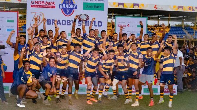 Royal College Colombo claimed the prestigious Bradby Shield with an aggregate score of 18-13 despite Trinity College Kandy winning the second leg 08-03 at the Royal Complex in Colombo this evening (06).