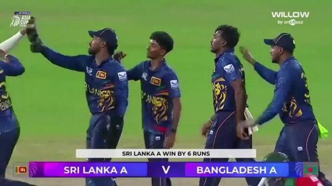 Sri Lanka A secured a nerve-wrecking six-run win over Bangladesh A in Match 12 of the ACC Asia Cup Rising Stars 2025 at the West End Park International Cricket Stadium, Doha on Wednesday, November 19.