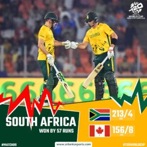At Narendra Modi Stadium, Ahmedabad, South Africa crushed Canada in a dominant T20 World Cup performance.