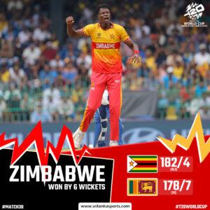 Zimbabwe reached the top of the Group B points table after defeating Sri Lanka by 6 wickets.